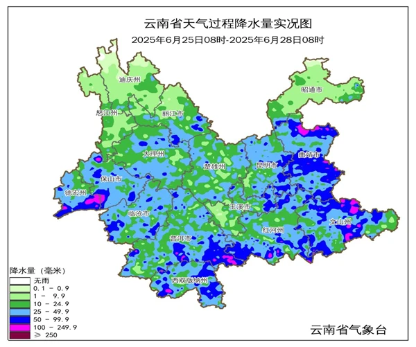 6月27日,我省中東部、南部、西部邊緣發(fā)生的強(qiáng)降雨過程結(jié)束,過程平均雨量32.6毫米,最大小時(shí)雨量91.9毫米,出現(xiàn)在普洱市思茅區(qū)六順鎮(zhèn)南邦河站。