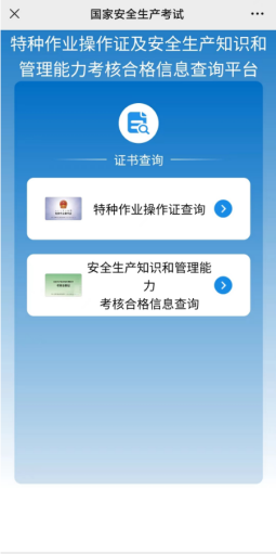 步驟 2:根據(jù)需要選擇“特種作業(yè)操作證查詢”或“安全生產(chǎn)知識(shí)和管理能力考核合格信息查詢”,如實(shí)填入證件信息和姓名,就可以看到證書信息和復(fù)審時(shí)間。